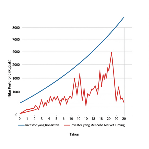 Penelitian berulang kali menunjukkan bahwa investor yang mencoba market timing seringkali justru merugi. Mereka cenderung melewatkan hari-hari terbaik pasar, yaitu hari-hari ketika sebagian besar keuntungan pasar terjadi. Jika Anda melewatkan hanya beberapa hari terbaik dalam satu dekade, imbal hasil portofolio Anda bisa anjlok drastis. Ini seperti mencoba menangkap air hujan dengan tangan kosong, sangat sulit dan tidak efisien.